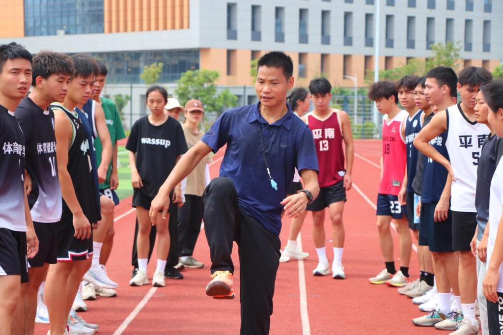 为促进体育教育专业教师的教学水平,提高课堂的教学质量,培养师范生的运动技能,5月8日,玉林师范学院公共体育教学部主任李远华及体育教育专业部分骨干教师前往新田径场开展体育教育专业田径普修课程的教研室活动。本次教研课由何祥海主讲。