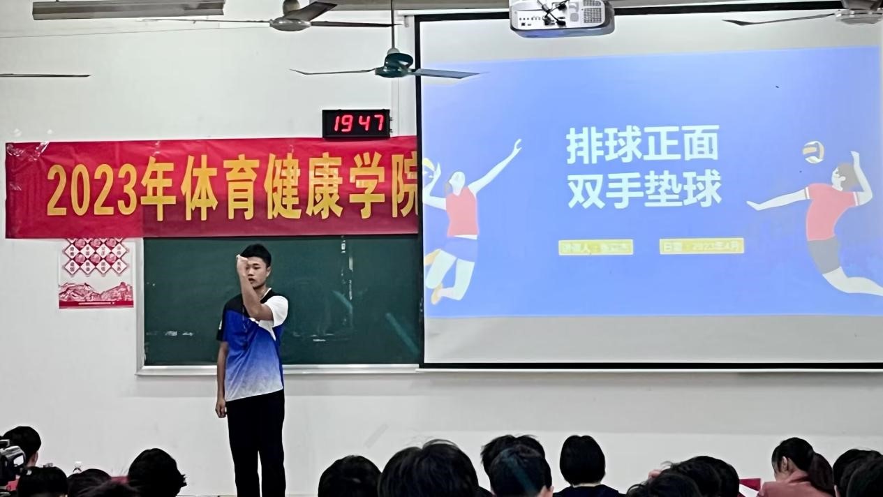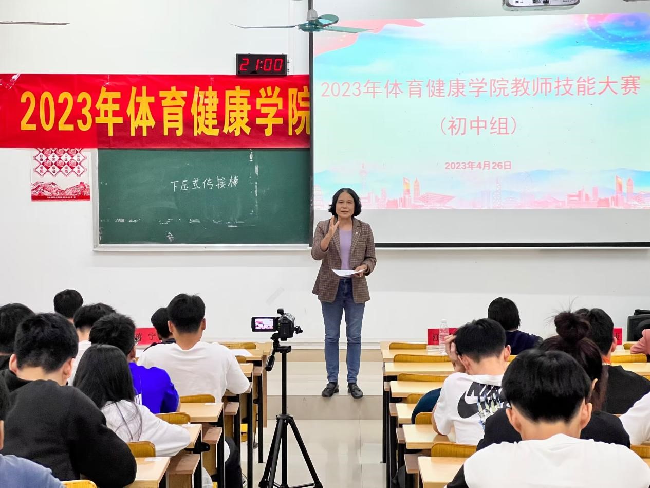 此次大赛本次教师技能大赛由八位参赛选手进行现场模拟教学以及模拟说课,比赛由教学设计、即兴演讲、教学展示三个环节组成进行综合考核。选手们要对教案以及技术动作进行讲解。在展示过程中选手们说课材料准备充分,教学思路清晰,教学过程设计合理,动作示范规范,均展现了优秀的教学技能和良好教师风采。