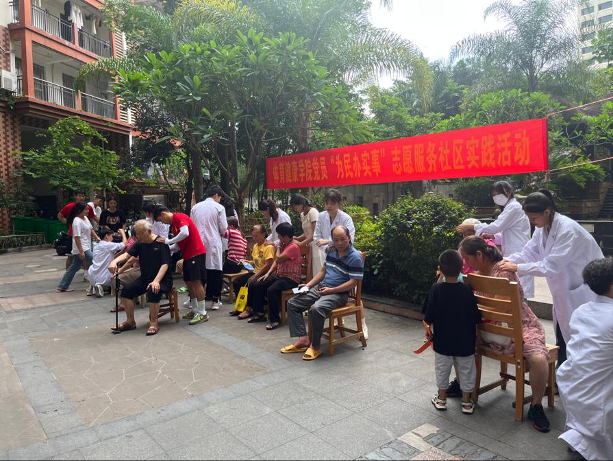活动开始,运动康复专业的学生党员为社区群众提供康复理疗义务服务,并且科普相关的健康知识。