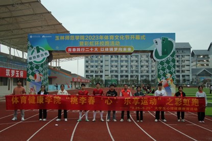 为展现当代大学生风采,激发学生积极参加体育锻炼,加强全体学生得心理素质,进一步促进学生人格的健全发展,塑造良好的校园文化氛围,4月25日,我校于东校区新大田径场举办“桃李春‘心’乐享运动”之彩虹跑活动。参加活动人员有我院党委书记周必宁,院长蒋宁,党委副书记江俊,全体辅导员以及各班同学代表。