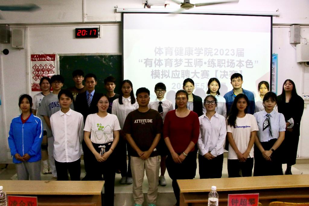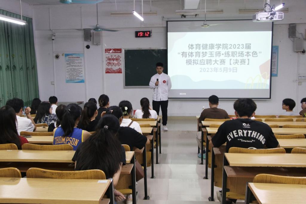 2023年5月9日,我院于我校东校区厚德楼2-207室召开“有体育梦玉师·练职场本色”模拟应聘决大赛(决赛)。参加本次大赛的有我院团委书记钟超攀老师,辅导员王燕、凌金欢,以及全部参赛选手。本次大赛由程家凛主持。