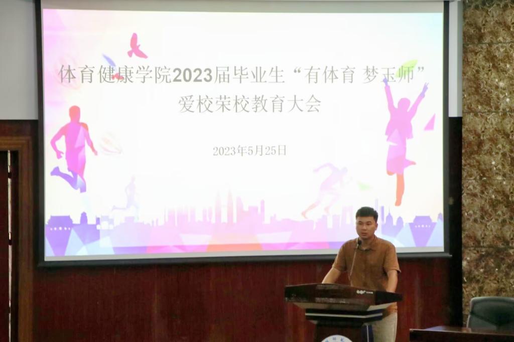 为使学生明确树立远大理想和制定近期目标的意义,正确认识远大理想和近期目标的关系。5月25日,我院于学术报告厅召开2023届毕业生“有体育,梦玉师”爱校荣校教育大会。2023级全体毕业生参加此次大会,会议由钟超攀老师主持。