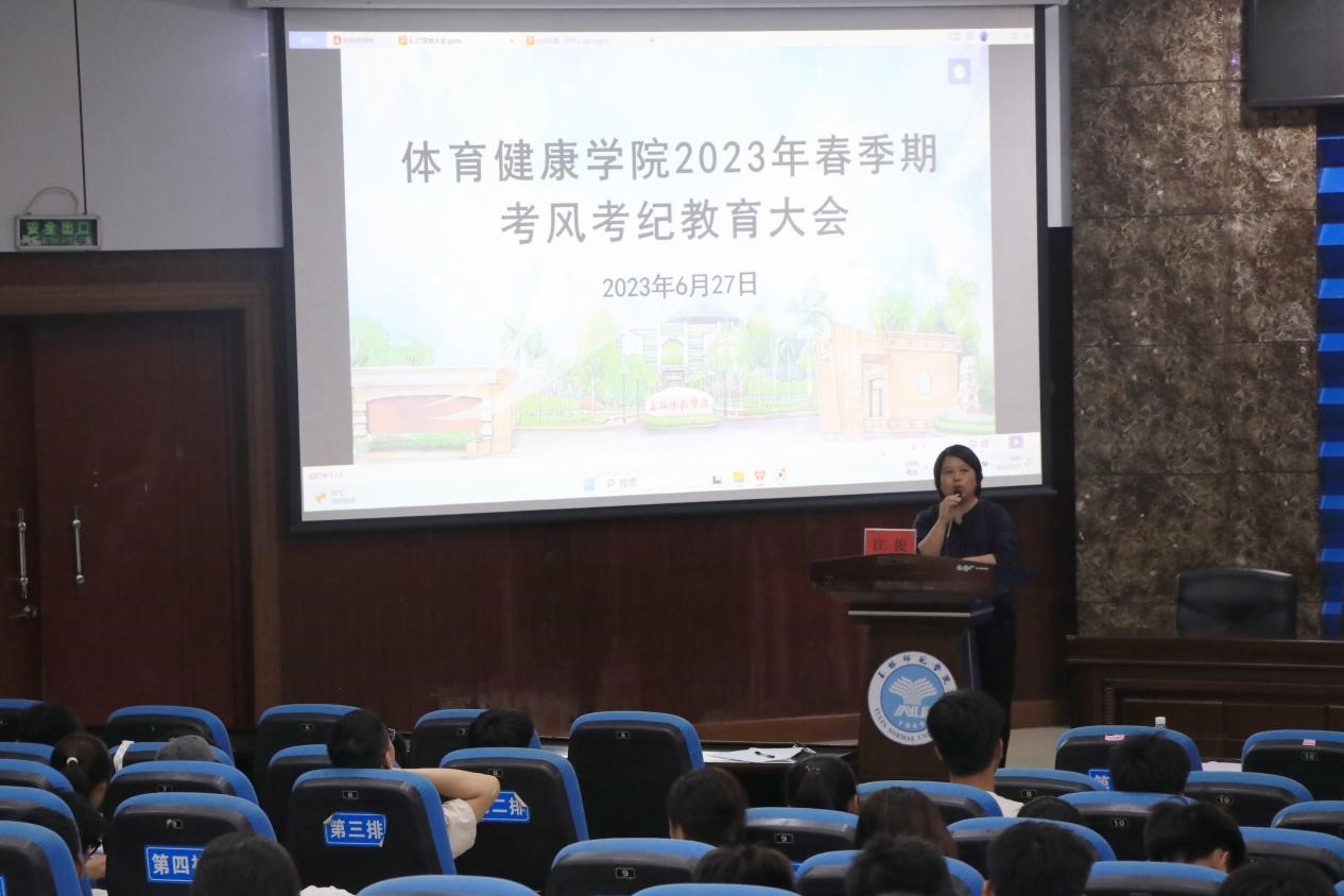 为切实加强考风考纪教育,增强学生诚信意识,端正学习态度,树立良好学风,6月27日,诸侯快讯入口官网在我校东校区学术报告厅召开诸侯快讯入口官网考风考纪教育大会,参与本次会议的有该院党委副书记江俊,全体辅导员及该院全体在校生。会议由江俊主讲。