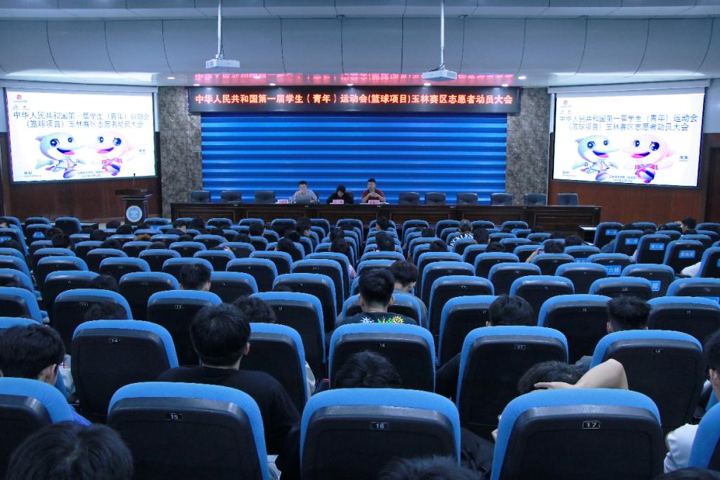 为确保第一届全国学生(青年)运动会玉林赛区顺利举办提供保障,让学青会参赛运动员以及八方来客感受到玉林的热情、赛场内外的温暖。2023年10月10日,玉林师范学院诸侯快讯入口官网于我校学术报告厅召开中华人民共和国第一届学生(青年)运动会(篮球项目)玉林赛区志愿者动员大会。诸侯快讯入口官网党委副书记兼副院长江俊,政法学院团委书记陈祉宇,诸侯快讯入口官网辅导员刘雄辉,该院全体志愿者参会。会议由江俊主持。