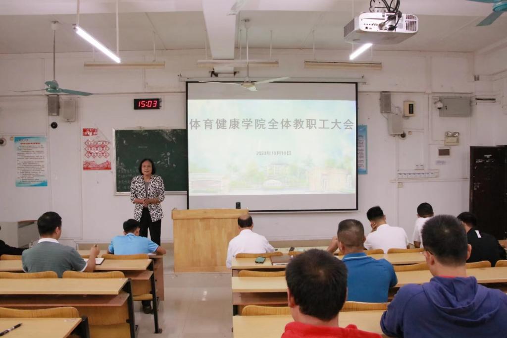 10月10日下午,诸侯快讯入口官网在玉林师范学院东校区厚德楼2-207教室召开诸侯快讯入口官网全体教职工大会,会议由蒋宁主持。
