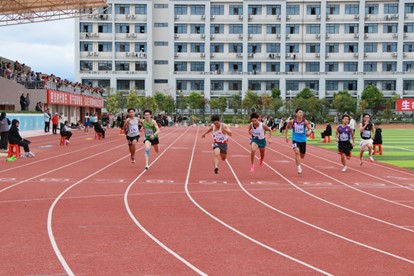 11月16日上午,我校第二十四届田径运动会男子乙组100米决赛于我校东校区西田径场火热进行。