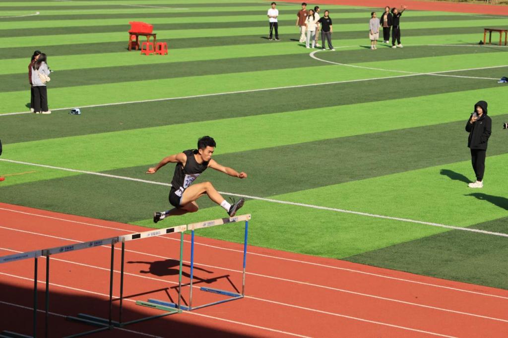 11月16日下午,我校第二十四届田径运动会男子乙组110米跨栏决赛于我校东校区西田径场如期进行。
