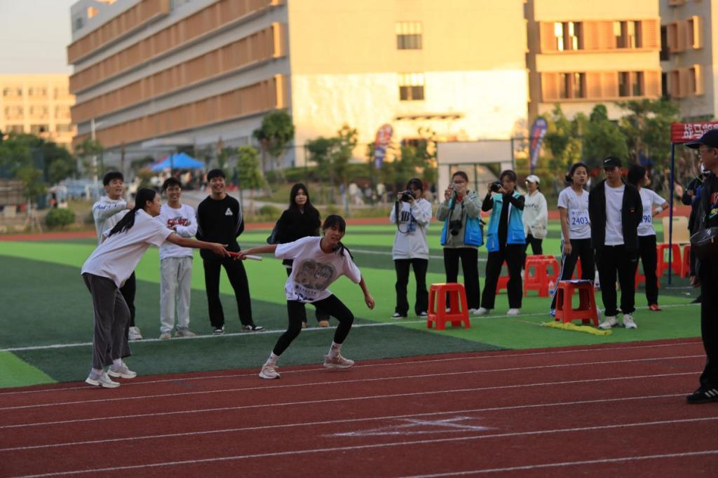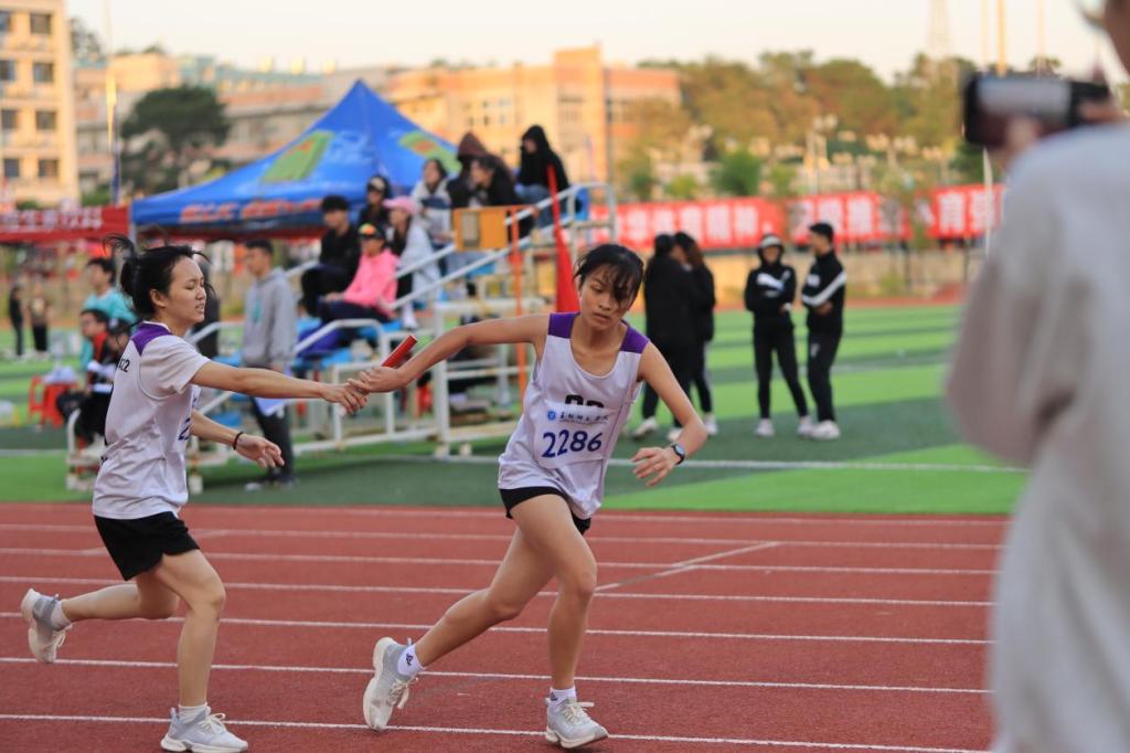 一条跑道,要四个人去打造一个信念,要四个人去拼搏。每次交接都是信任的传递;每次交接都是永恒的支持。最后体教23级以4分44秒的成绩夺冠,社体专业以4分52秒的成绩夺亚,体教21级以5分05秒的成绩夺得季军。