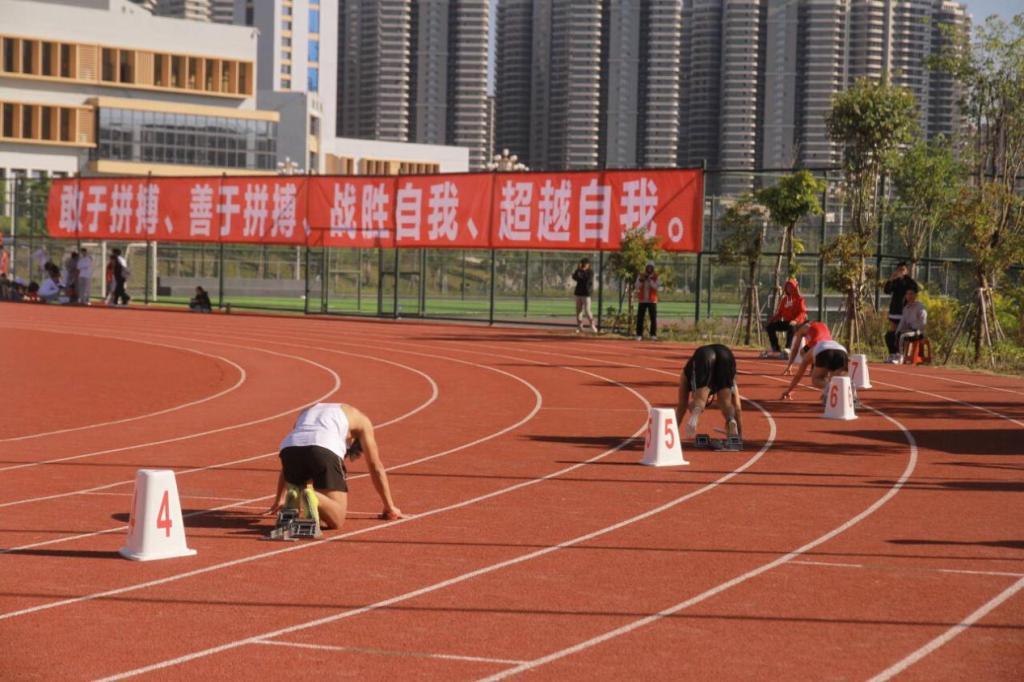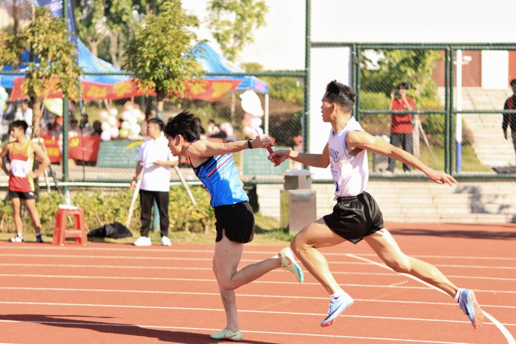 赛前,运动员们在跑道起点处积极地做着伸腰、压腿、试跑等热身动作,不断调整状态。本次比赛备受同学们的关注,赛道两旁人影沸腾,加油助威声此起彼伏。裁判员一声“预备”,运动健儿们做好起跑准备,注意力高度集中,随着一声枪响,各队选手像离弦的箭一般冲出起跑线,彼时展开一番激烈的角逐。观众们站在跑道旁,激情澎湃地给选手呐喊助威,运动场瞬间热闹起来,每一声加油,都是对选手无限的欢呼与鼓舞。在这场速度与毅力的接力中,每一位选手都拼尽全力,为团队、为集体拼搏奋斗,争取拿下胜利的掌声与荣耀。
