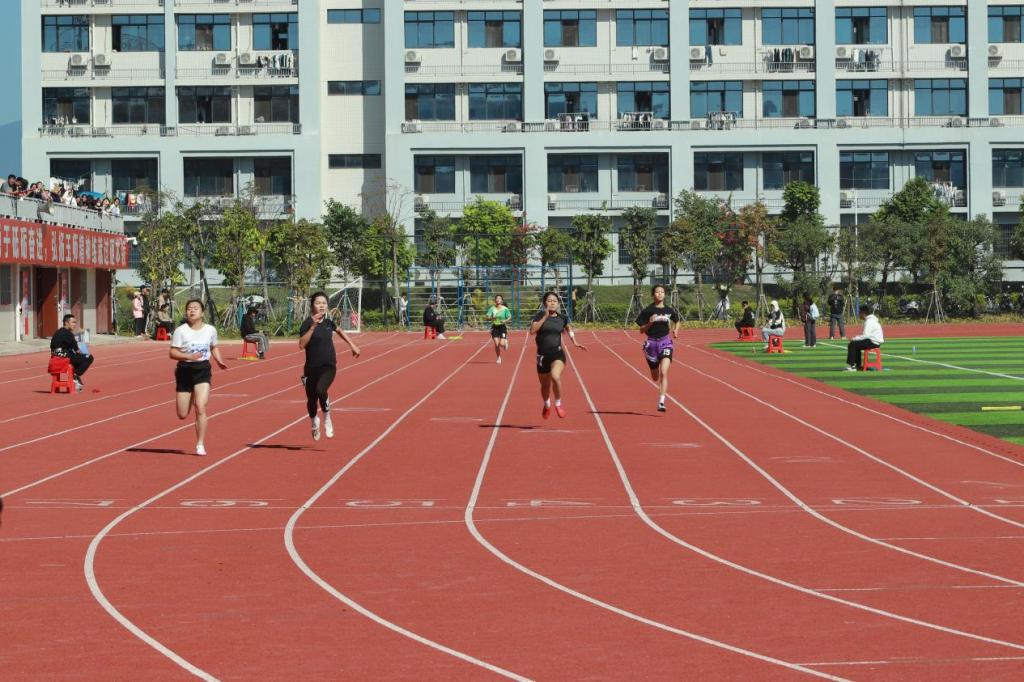 11月17日上午,我校东校区西田径场正在进行着第二十四届田径运动会女子乙组200米决赛。