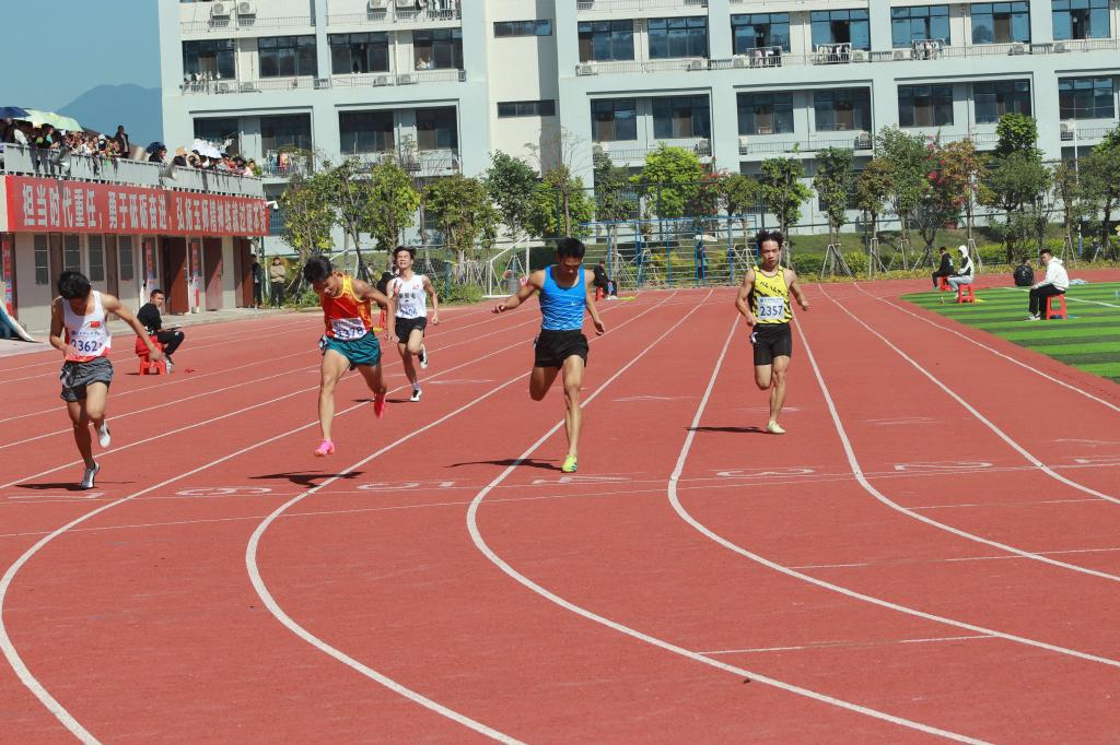 11月17日上午,在我校东校区西田径场正在进行着第二十四届田径运动会男子乙组200米决赛。