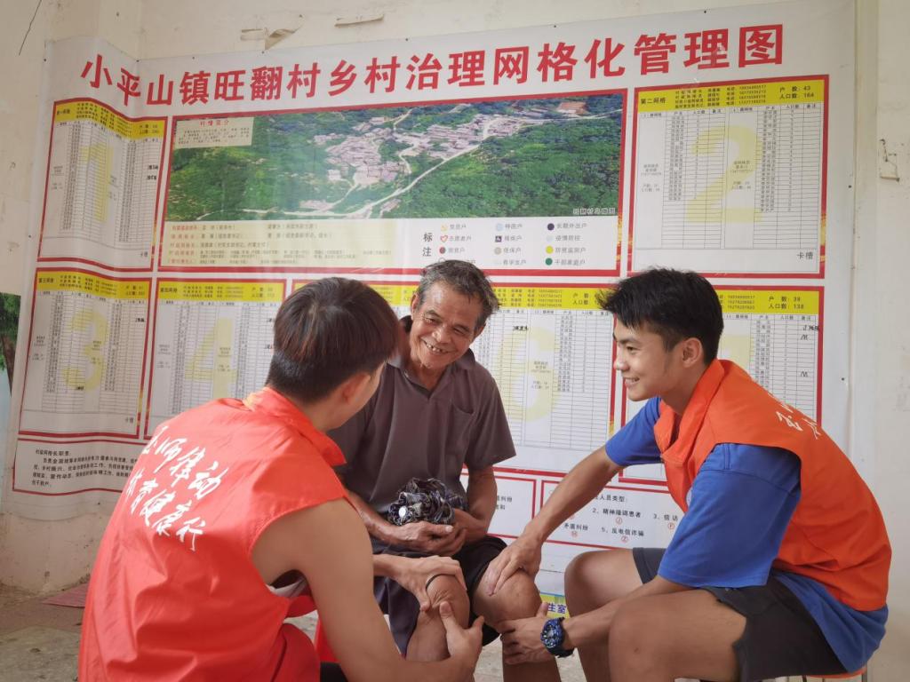 在活动过程中,旺翻村驻村第一书记钟超攀、该院辅导员伍灿明认真指导受助学子,应村民的需求,运动康复专业的志愿者简单了解村民们的症状,采用推拿、拔罐、艾灸、针灸等系列方法为村民进行康复治疗。另外,部分受助学子用通俗易懂的话语一方面从中医学基础理论、经络知识、穴位运用、艾灸使用方法等方面向村民讲解健康知识;另一方面从血压测量、BMI(肥胖指数)等方面为村民开展体质健康检测,科学、综合分析检测结果,指导村民进行运动康复,受到村民一致好评。