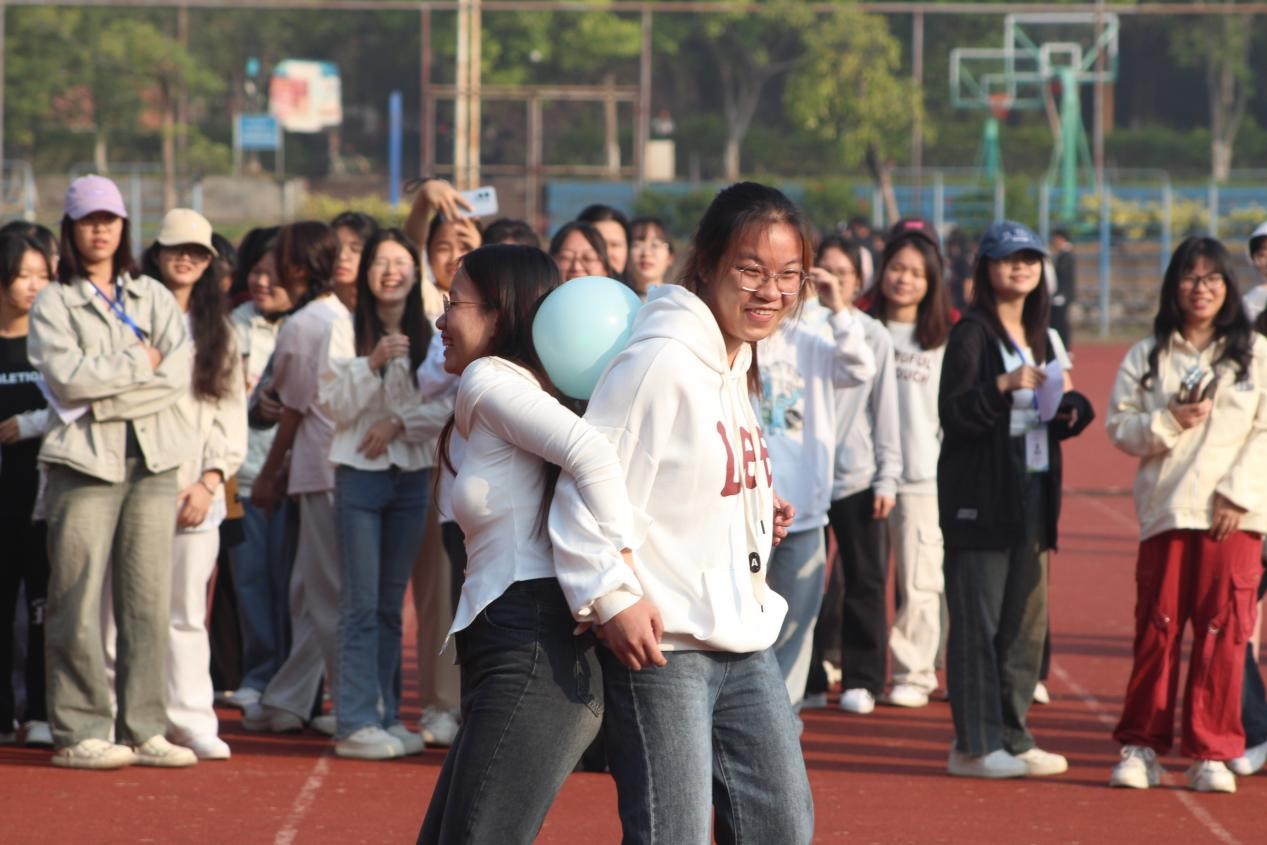 伴随优美的开场舞步,两院开始进行本次宿舍文化艺术节趣味游戏系列活动。其中“背部运气球”游戏在赛道上吸引了广大学生,游戏以竞赛的方式在20米长的区域两人通过后背将气球夹起来,将气球运送一个来回,用时短者获胜。