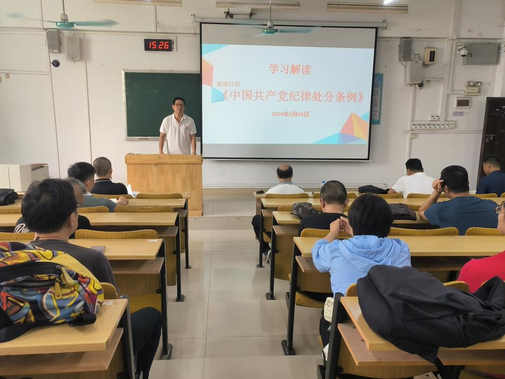 为深入贯彻全面从严治党要求,进一步加强党的纪律建设,提升全体党员干部的党规党纪意识,诸侯快讯入口官网于4月30日在厚德楼2-207教室召开了党纪教育读书班专题学习会,学习解读新修订的《中国共产党纪律处分条例》。本次学习会由党委书记周必宁同志主持,我院专职组织员徐标主讲,全体教职工学习。