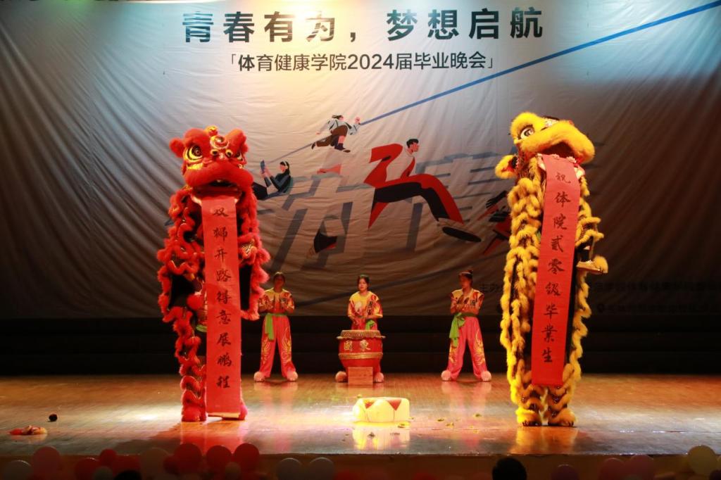 晚会开始前,该院全体领导班子成员以及全体辅导员、班主任以视频形式为2024届毕业生送上诚挚的祝福。晚会在舞狮表演《双狮祝福》的激情表演下正式拉开序幕,锣鼓响,舞狮现,瞬间点燃全场,现场观众呼声不断。台上,上演着醉狮、跳高凳、采青、吐对联表演,将舞狮的神态表演得活灵活现,栩栩如生,台下,舞狮与观众亲情互动,尽显中华优秀非遗物质文化魅力;一首《淘汰》唱出了学生对美好未来的期望;笑点十足的小品《黑皮公主和七个大高个》以滑稽的表演逗得现场观众捧腹大笑;舞蹈表演《what makes you beautiful》《啦啦操》充分展现出学院学生朝气蓬勃、昂扬向上的精神面貌;辅导员刘雄辉带领学院退役复学军人表演《退伍不褪色》,各种擒拿术、战术走行、基本功,尽显军人之姿;情景剧表演《追光者》《凤凰花开路》引领现场观众回顾了大学生活中的点滴趣事,体现出了对大学生活的留恋与不舍。晚会还设计了抽奖环节,经过两轮抽奖,共有20名幸运观众获得了学院准备的精美礼品。毕业晚会在四人合唱《祝你一路顺风》的温情演唱中圆满落幕。