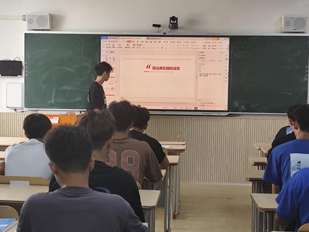 在主题班会中,各班级结合具体案例生动地为同学们介绍和讲解了《民法典》的相关法律法规,各班团支书播放了教育宣传视频,让学生们深入了解了《民法典》编纂的指导思想、基本原则和重要意义。同时结合与大学生学习、生活紧密相关的典型案例,解读了《民法典》在学习生活中的运用,达到学法懂法守法用法的学习目的,了解运用法律武器保护自身合法权益的重要性。
