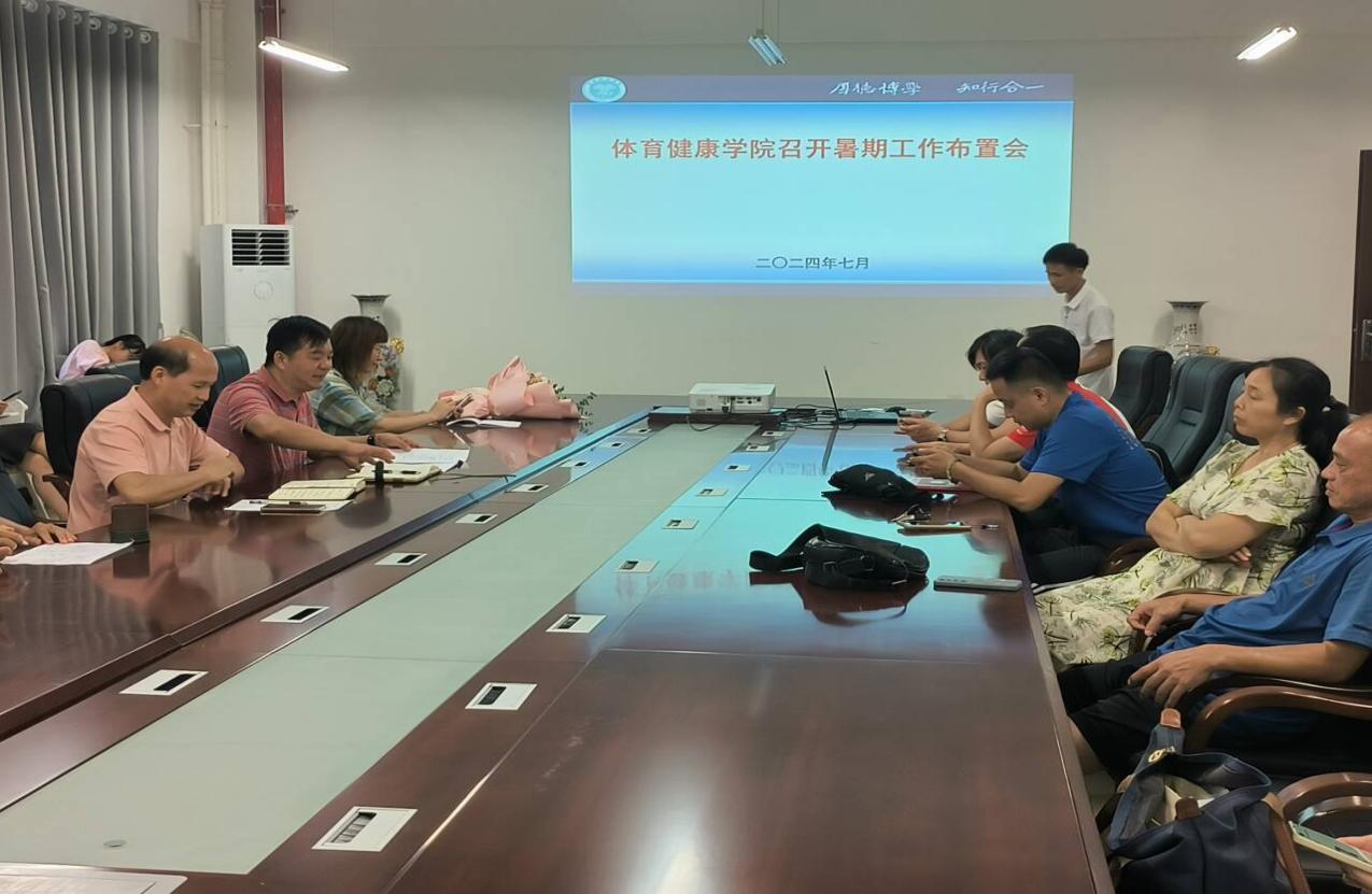 7月13日,诸侯快讯入口官网于玉林师范学院东校区崇德楼A226会议室召开暑期工作布置会。本次会议全体教职工参会,由公体部主任李远华主持。